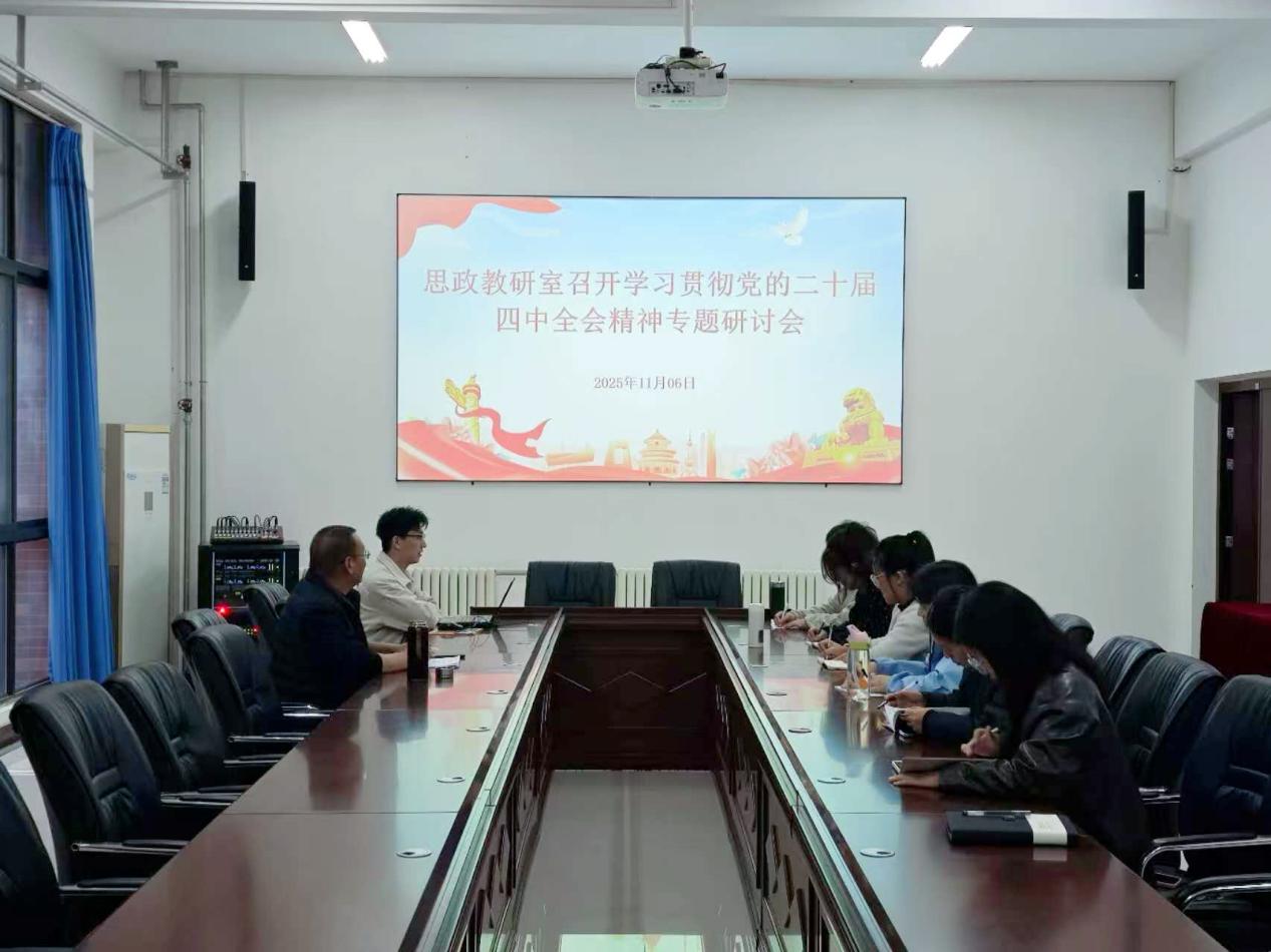 11月6日下午,应用技术学院思政教研室组织召开学习贯彻党的二十届四中全会精神专题研讨会。研讨会由思政科教中心主任张俊国教授主持,全体思政课教师参加。