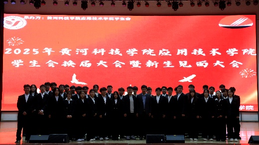 青春接力,薪火相传。为加强学生会组织建设,选拔优秀学生骨干,凝聚青春力量,黄河科技学院应用技术学院于2025年11月13日在师生活动中心隆重举行学生会换届大会暨新生见面会。应用技术学院党委副书记高德峰、学生会指导老师李毅恒、往届主席团成员及学生会全体新老成员齐聚一堂,共同见证这一承前启后的重要时刻。