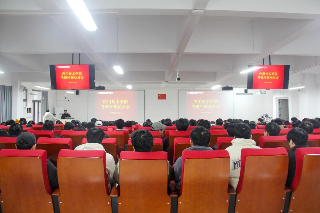 为鼓舞考研学子士气,助力学子高效冲刺,近日,黄河科技学院应用技术学院隆重召开考研冲刺动员会。黄河科技学院学生中心主任、应用技术学院党委书记张丕万,学院院长徐斌,党委副书记高德峰,学生处处长赵钊,22级毕业班辅导员及考研学子齐聚一堂,共同吹响冲刺考研的集结号。