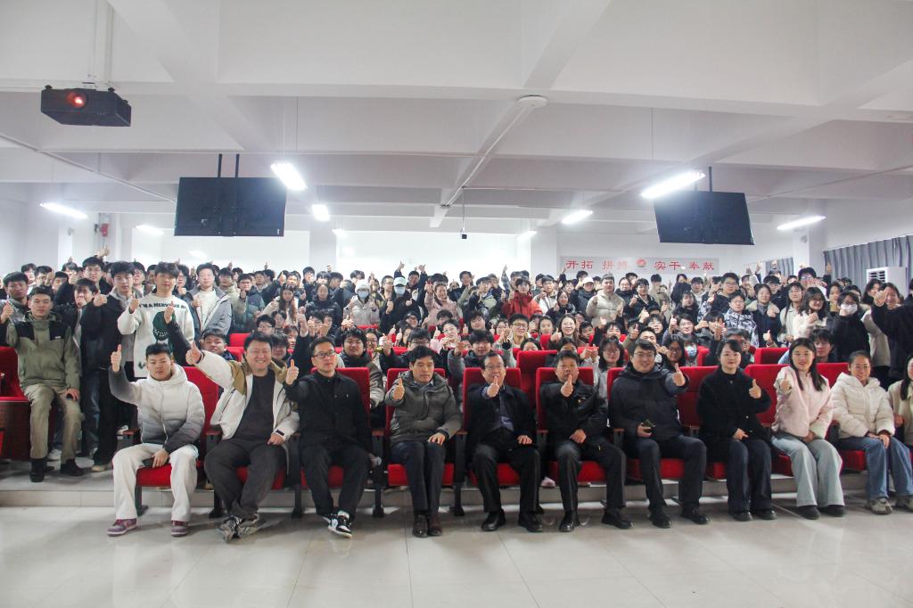 随后,全场响起热烈掌声,欢迎张丕万书记作动员讲话。张书记的讲话饱含殷切期望,既肯定了同学们长久以来的坚持与付出,又为大家鼓足了冲刺的干劲,字字句句都化作冲锋的号角,激励着在场每一位学子奋勇前行。最后全体师生共同合影留念。大家纷纷伸出手、竖起大拇指为自己点赞,齐声喊出“一研为定”的铿锵誓言,将现场氛围推向高潮。相信在学院的关怀下,全体考研学子定能怀揣梦想,全力以赴,在考场上书写满意答卷!