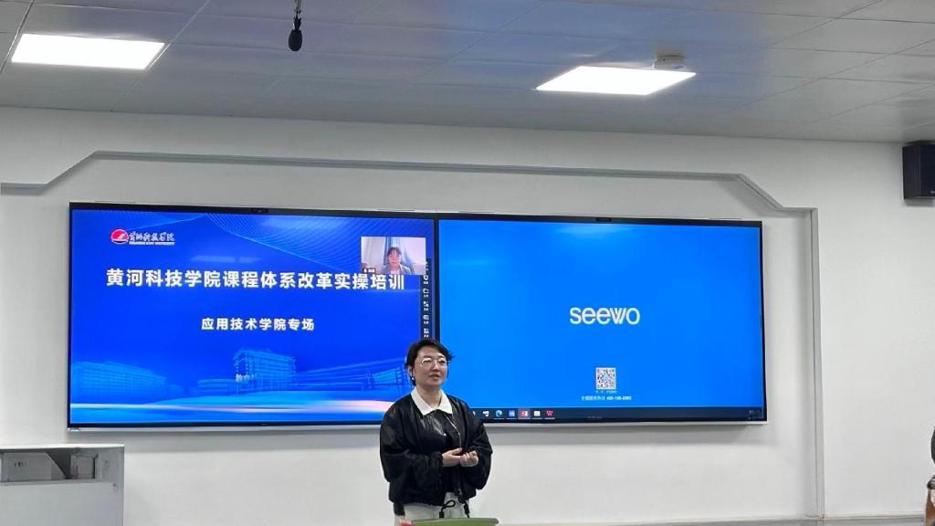 2026年4月2日下午,应用技术学院在3号教学楼南507智慧教室,开展产教融合课程体系改革实操培训。本次培训是黄河科技学院教育教学中心产教融合型课程体系改革专家团队对应用技术学院的专场培训,教育教学中心副主任李海霞教授携郑州校区专家团采用“线上辅导+现场培训”方式进行专业指导,培训会由应用技术学院教务处处长孔艳丽主持,覆盖应用技术学院16个专业,共60名中青年教师参训。