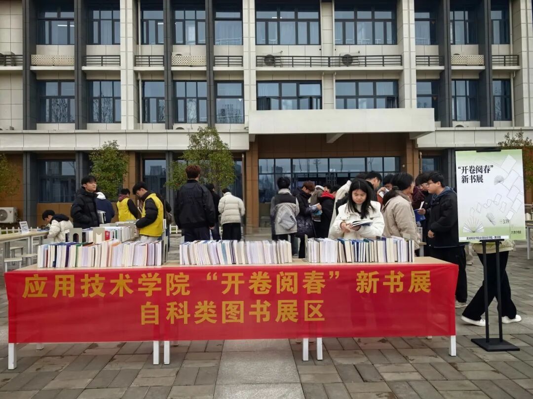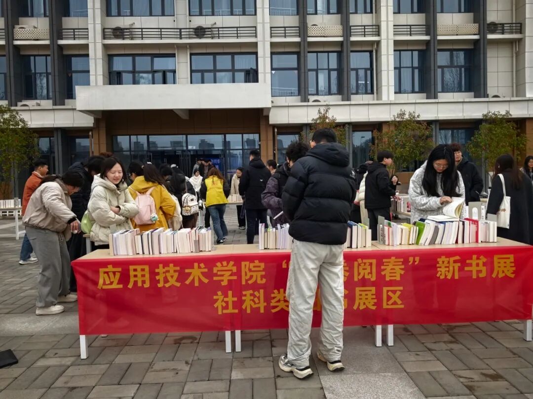 阳春三月,书香氤氲。3月19日,由应用技术学院图书馆主办的“开卷阅春——在字里行间遇见知识新绿”春季新书展在3号教学楼前圆满落下帷幕。本次活动精选2026年度新入藏图书2000余种,涵盖学院各学科领域及休闲阅读类别,以一站式展示、现场借阅、趣味互动等形式,为全校师生打造了一场沉浸式的春日阅读盛宴,在校园内掀起了一股借阅热潮。