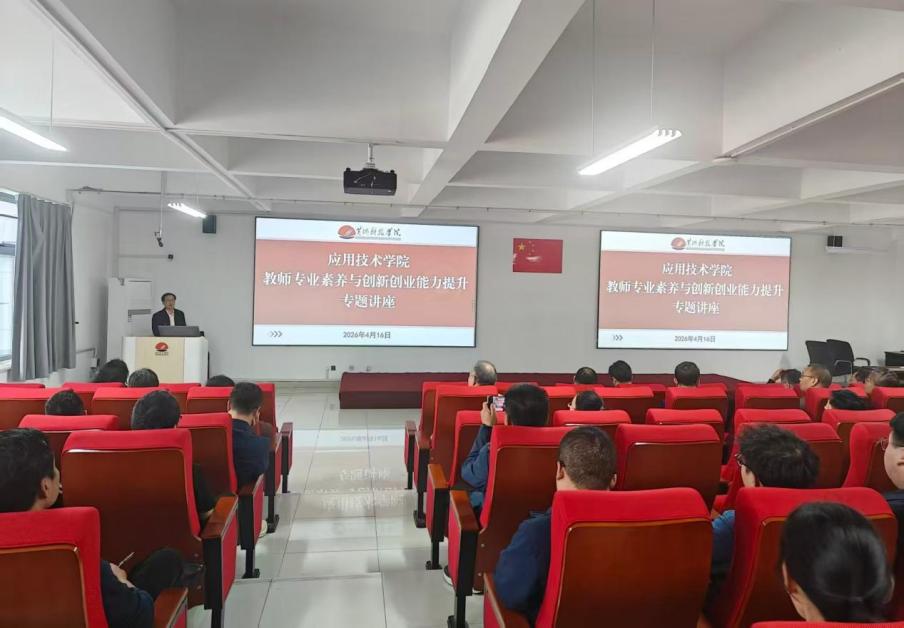 为深入贯彻学校“1248”发展战略,弘扬黄科大精神,提升教师专业素养与育人能力,4月16日下午,应用技术学院在3号教学楼新愚公大讲堂举办教师成长专题讲座,特邀黄河科技学院商学部党委纪检委员、创新创业科教中心主任岳佳坤教授主讲,讲座由徐斌院长主持。