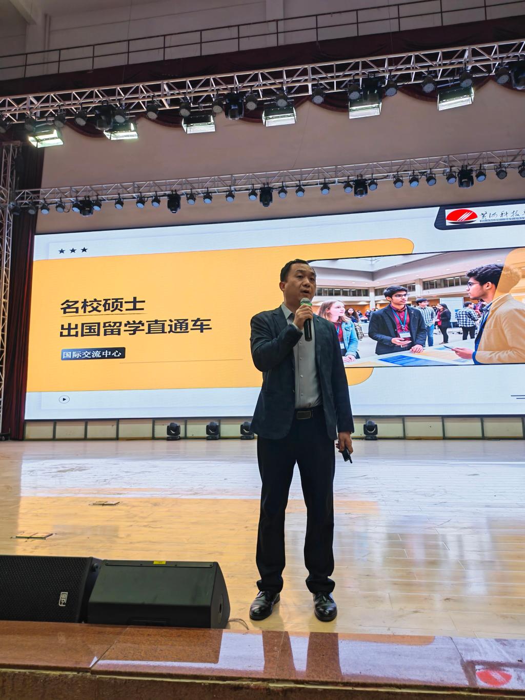 此外,学院同步开展出国留学专题宣讲会,郭建伟主任围绕“海外名校硕士留学直通车”主题展开详细宣讲。宣讲中,他系统介绍了学校优质海外合作院校资源,涵盖多个国家和地区的知名高校,详细解读了各留学项目的招生条件、办学特色、培养模式及完整升学路径,清晰梳理了海外硕士申请的核心要点、时间规划及注意事项,为有意向出国深造的学子构建了系统化、可落地的升学指导体系,让学生对海外留学有了更全面、更清晰的认知。