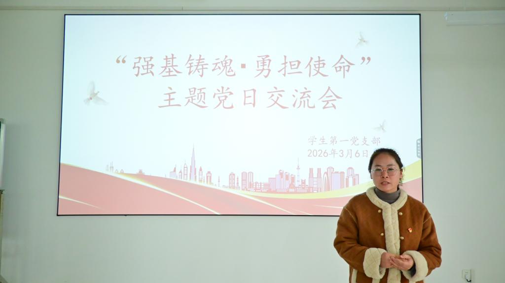为充分发挥学生党员的榜样力量,推进主题教育走深走实,强化学生党员政治素养与责任担当。3月6日,我院学生第一党支部在3号教学楼开展“强基铸魂・勇担使命”主题党日交流会。会议由支部组织员陶佳蕊老师主持,全体党员、预备党员及入党积极分子身着正装、佩戴党员徽章,以饱满热情参会。