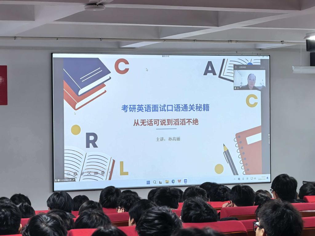 交流会上,由学生职业发展中心孙高丽老师率先带来考研英语复试专项线上指导。她围绕复试英语面试礼仪、口语表达逻辑、听力解题技巧等核心要点展开详细讲解,结合历年复试常见问题与典型案例,拆解得分关键,传授实用应对方法,帮助学子们夯实英语复试基础,缓解备考焦虑。
