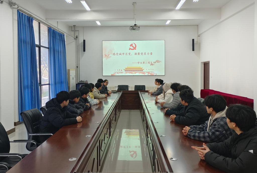 为进一步增强基层党组织的凝聚力和战斗力,深入学习贯彻党的二十大精神,切身感受新时代城市建设发展的辉煌成就,2026年3月12日,应用技术学院学生第二党支部组织全体党员开展了“凝聚党员力量,感受城市巨变”主题党日活动。活动分为理论学习与实地践学两个环节,通过“视听+体验”的方式,为支部党员上了一堂生动的“行走的思政课”。