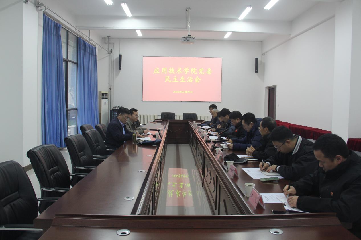 为深入学习贯彻习近平新时代中国特色社会主义思想,全面落实党的二十届四中全会精神,锲而不舍落实中央八项规定精神,推进作风建设常态化长效化,2026年2月28日,应用技术学院党委在行政楼一楼会议室召开2025年度民主生活会。学校党委组织部部长贾福辉、宣传部部长助理王琳玮作为上级督导组负责同志到会指导,学院全体党委委员参会,副院长杨宗霄、华平列席会议,会议由学院党委书记张丕万主持。