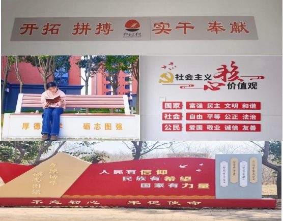 校训与时代使命同频共鸣。长椅上“厚德博学,砺志图强”的校训,与“不忘初心、牢记使命”的时代号召交相辉映,提醒着每一位黄科院人,以深厚学识涵养品德,以坚定意志追求卓越。